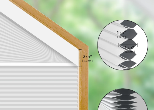 Descripción : Los tonos celulares tienen una estructura de panal única que atrapa las células de aire, creando un gran aislamiento. Están disponibles en una sola , célula doble o triple para mejorar el rendimiento energético. ( Sombras celulares de células individuales versus células dobles )